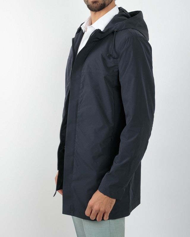 Il giubbino lungo con cappuccio e zip . un capo ideale per la tua estate. ll capo . realizzato in tessuto tecnico idrorepellente e traspirante. Il tessuto leggero e morbido facilità la libertà dei movimenti. CARATTERISTICHE- Giubbino- con cappuccio- Tinta Unita- 100% Poliestere- Slim Fit-